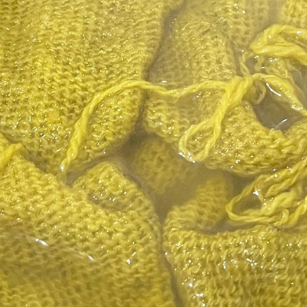 La oveja y de ella la lana, con su textura, memoria, lanolina y enredos, nos llevó a pensar con el cuerpo, a detenernos en lo que usualmente se da por sentado, a habitar los tiempos lentos de escarmenado, el hilado y el tejido; a oler, a ensuciarse las manos, a perder la forma para volver a componerla. Este es un enredo de nueve proyectos que, desde distintos gestos, experimentaron con los valores, materialidades y potencias de la lana para abrir preguntas importantes y sembrarnos dudas —sobre el origen de lo que vestimos, sobre quién lo hace y bajo qué condiciones, pero también sobre cómo reparar, compartir y reaprender con lo que ya está.